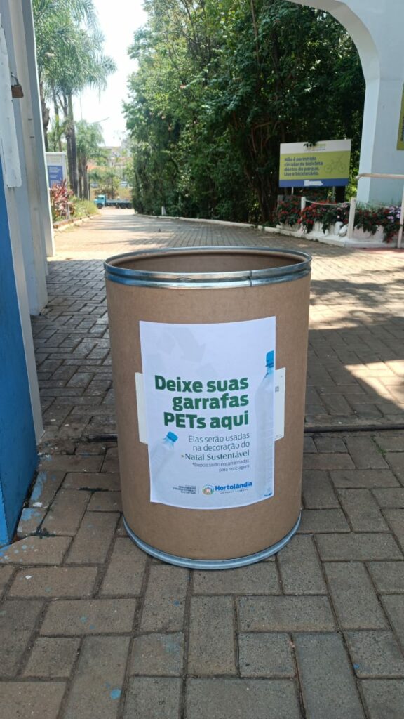 Segue a todo vapor a campanha de arrecadação de garrafas PET, que serão reutilizadas para decorar os espaços públicos de Hortolândia onde a Prefeitura realizará o Natal Sustentável – o Pq. Socioambiental Irmã Dorothy Stang, no Jd. Nossa Senhora de Fátima; e o OAPE (Observatório Ambiental Parque Escola), no Jd. Santa Clara do Lago. A mobilização se encerrará na sexta-feira da próxima semana (15/11).