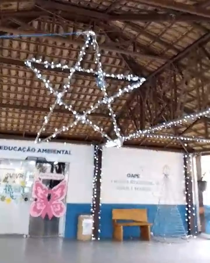 No espaço coberto onde fica a parte administrativa e acontecem as aulas de educação ambiental, servidores municipais já afixaram centenas de microlâmpadas, no madeiramento e em estruturas metálicas na forma de estrela e de anjo. Às margens da lagoa, visitantes podem ver instalada uma das árvores de Natal. A decoração, à base de festão, fitas coloridas e materiais recicláveis e reaproveitáveis, como garrafas PET, CDs e DVDs sem uso e outros objetos plásticos e metálicos, é preparada por servidores públicos no Parque Socioambiental Irmã Dorothy Stang, no Jd. Nossa Senhora de Fátima, onde a Administração Municipal fará a 8° edição do “Natal Sustentável”, a partir do dia seis de dezembro.