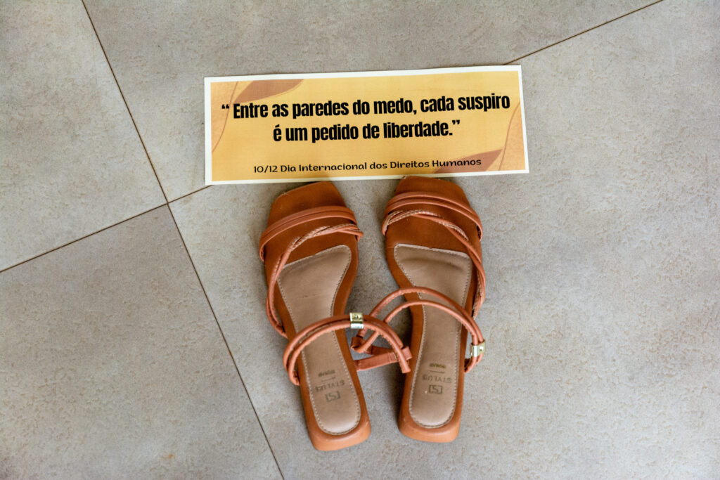 Além da exposição de fotografias de pessoas invisibilizadas pela sociedade e dos registros históricos de Hortolândia expostos na vernissage, a ação organizada pela Prefeitura estimulou a reflexão e empatia do público por meio de uma intervenção artística com calçados espalhados em pontos de acesso a portas, elevadores e escadas do Paço Municipal. Junto aos sapatos, o público pode ler frases como “Estou aqui, mas minha voz foi levada pelo vento”, e ainda pode se sensibilizar sobre a questão da violência sofrida por grupos minoritários por meio de frases como “Entre as paredes do medo, cada suspiro é um pedido de liberdade”.