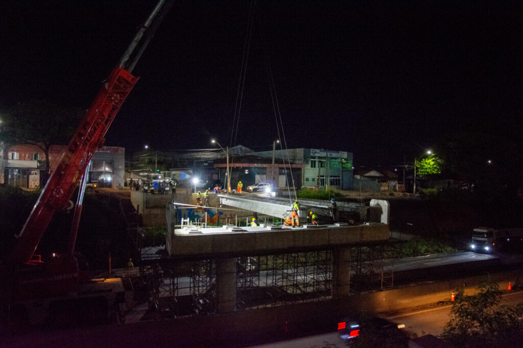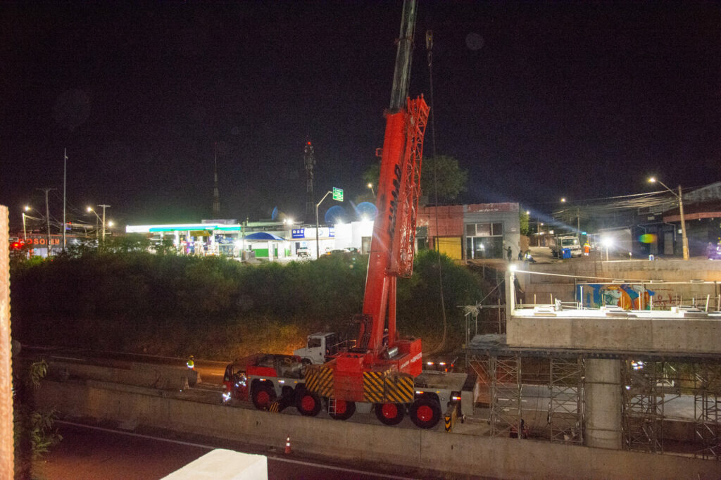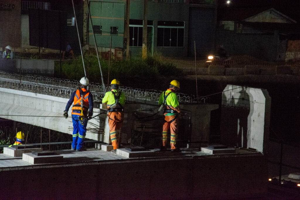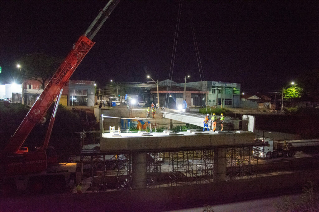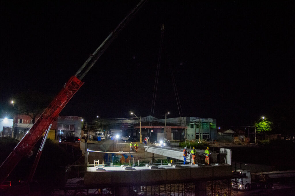 Empresa contratada pela Prefeitura realizou o içamento de vigas, na noite desta segunda-feira (16/12); previsão é que o serviço seja concluído na noite desta quarta-feira (17/12)