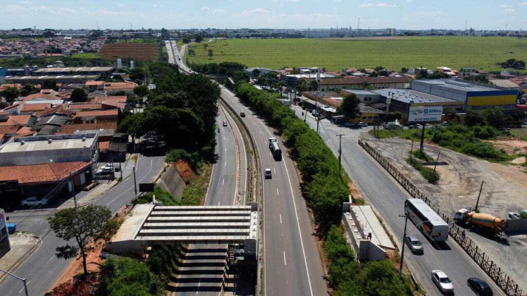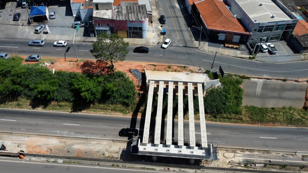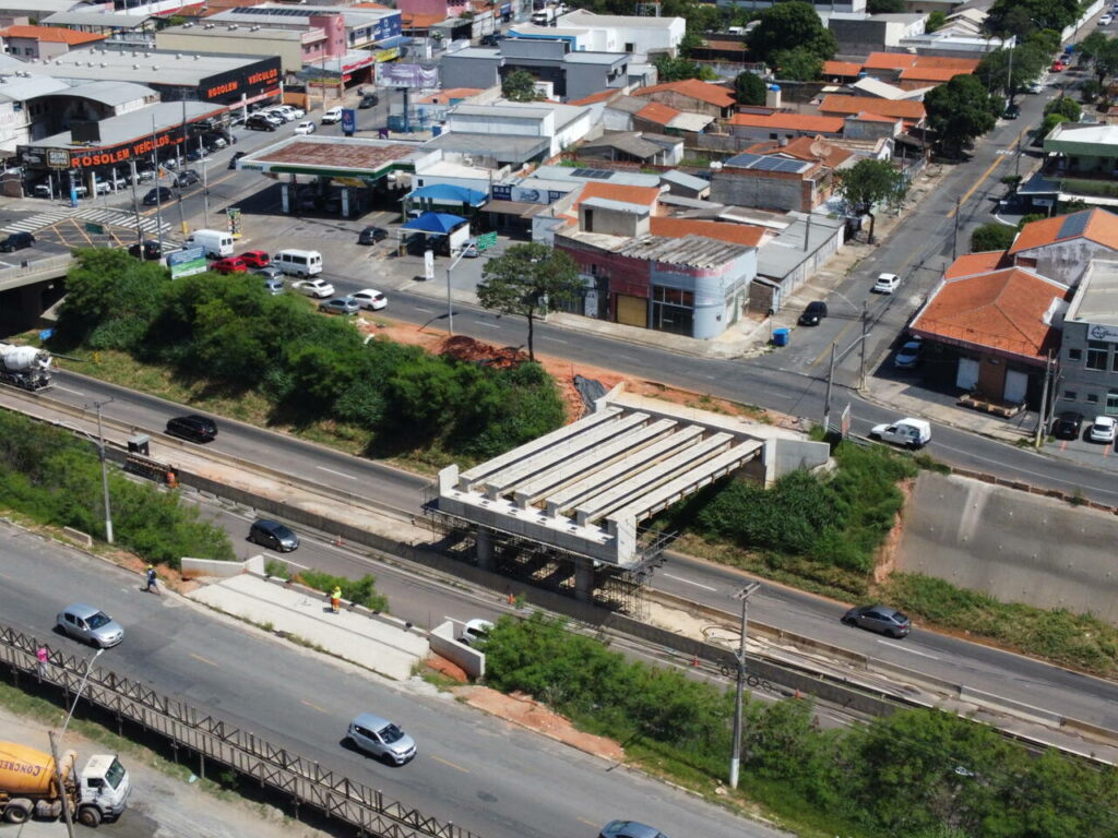 De acordo com a Secretaria de Obras, foram colocadas seis vigas sobre a rodovia, no sentido para Campinas. As vigas são estruturas horizontais que vão dar suporte ao viaduto. A fabricação das vigas foi feita no canteiro montado próximo ao local da obra pela construtora.
