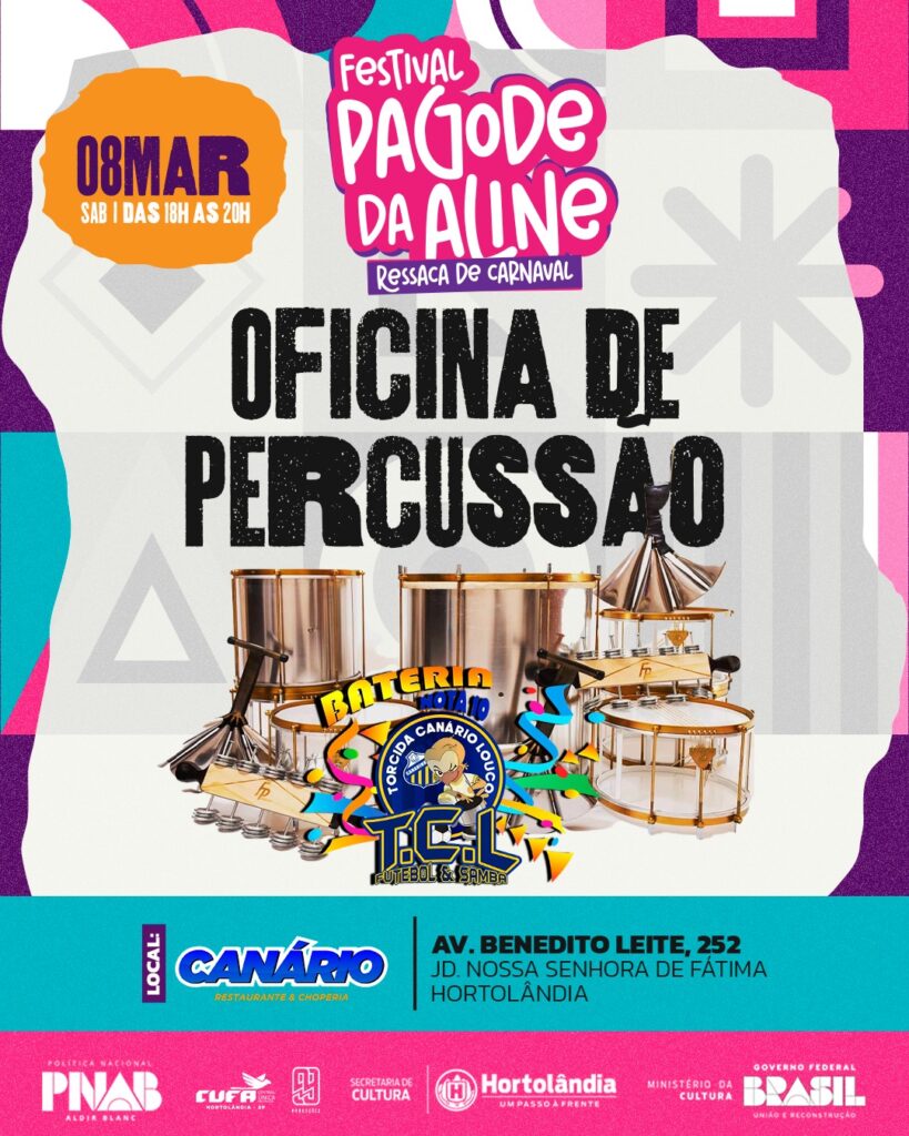 De acordo com a organização do festival, a oficina para iniciantes mostrará os diferentes tipos de instrumentos de percussão e ensinará toques básicos. Também serão abordadas a história do samba e do pagode. Haverá ainda uma demonstração dos instrumentos percussivos com parte da bateria da TCL (Torcida Canário Louco). Os participantes da oficina serão convidados para tocar no festival, no domingo.