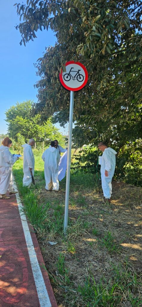 Para realizar a pesquisa, as equipes da UVZ vestiram EPIs (Equipamentos de Proteção Individual) para facilitar a identificação de animais que, porventura, tenham grudado nos EPIs durante a realização da atividade.