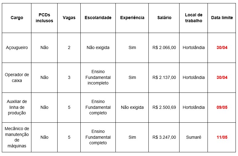 O PAT alerta que as vagas ficam disponíveis até as datas limites.