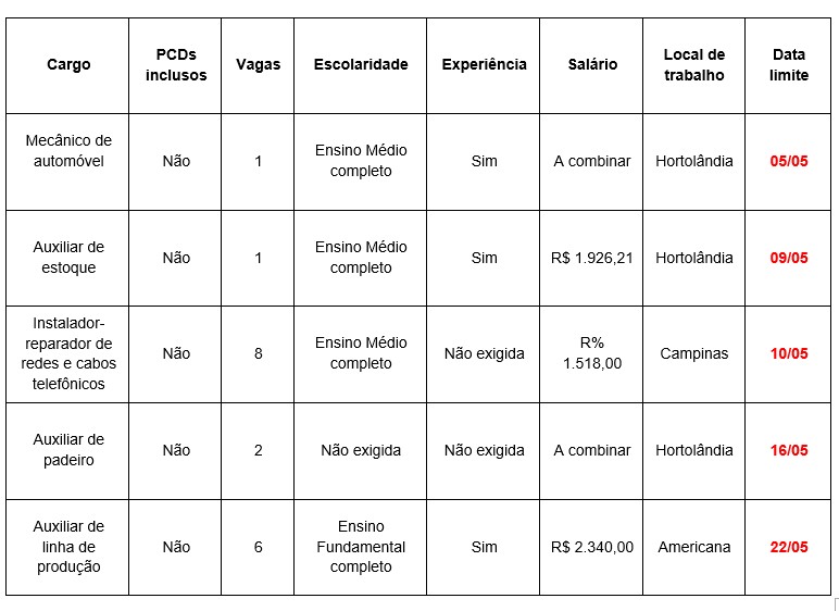O PAT alerta que as vagas ficam disponíveis até as datas limites.
