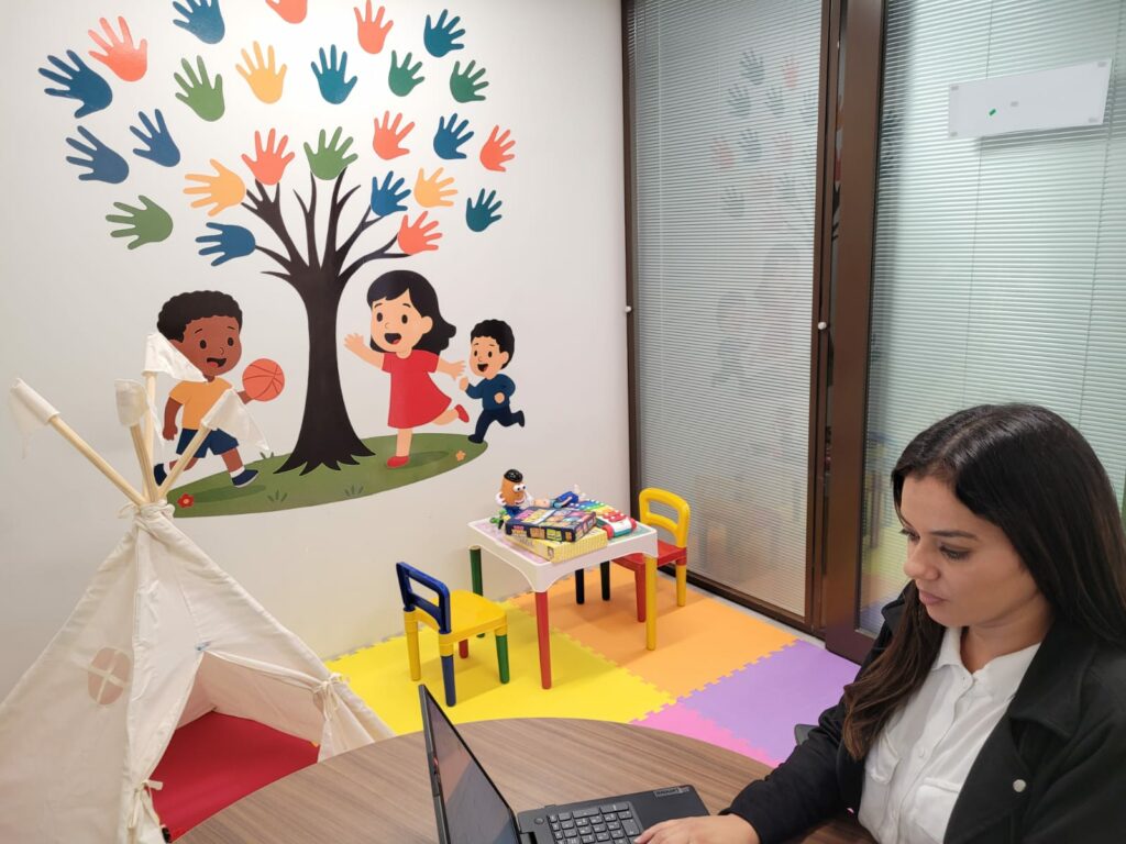 Chamado de “Laços de Inclusão: unindo pessoas, quebrando barreiras”, o espaço tem aproximadamente 10,5 metros quadrados, é climatizado, decorado e conta com mesinha, cadeiras, tapete de EVA, cabaninha e outros brinquedos sensoriais, além de jogos, lápis e papéis para uso por crianças do TEA (Transtorno do Espectro Autista), com TDAH (Transtorno de Déficit de Atenção com Hiperatividade) ou com algum tipo de déficit intelectual e/ou físico. A sala também oferece acesso à internet e ponto de eletricidade para que o servidor possa prestar o serviço necessário à família neste local, enquanto a criança ou o jovem PCD utiliza o espaço.