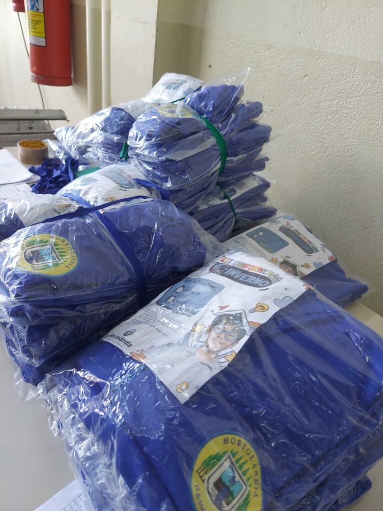 Conforme o previsto, a Prefeitura concluiu a produção dos kits de inverno a tempo de agasalhar os estudantes municipais, antes de o inverno chegar. Segundo a Secretaria de Inclusão e Desenvolvimento Social, responsável pela produção das 50 mil peças de inverno, os pacotes já estão sendo distribuídos, desde esta segunda-feira (29/04), para as 60 escolas próprias de Prefeitura e as sete EEI (Escolas de Educação Infantil) da Organização da Sociedade Civil (OSC) Maria do Carmo, parceira da Administração Municipal.