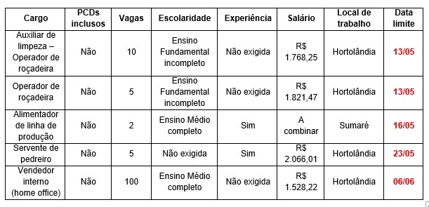 O PAT alerta que as vagas ficam disponíveis até as datas limites.
