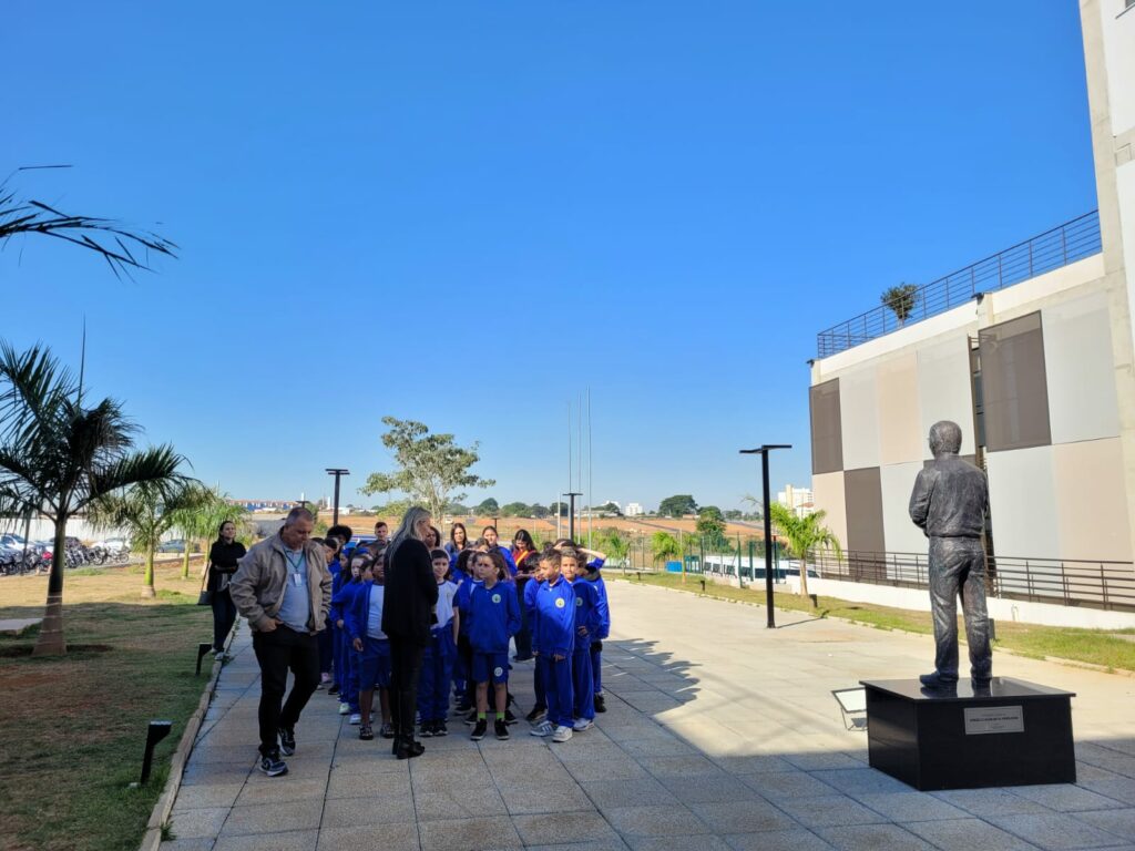 Junto com as professoras Elaine Rodrigues (4o ano C) e Valéria Moreira (4o ano D), as crianças visitaram o Novo Paço Municipal de Hortolândia, localizado na Rua Projetada 12, nº 100, no Jd. Metropolitan, região do Novo Ângulo, inaugurado em maio de 2024. Após serem recebidas pelos secretários de Educação, Ciência e Tecnologia, Fernando Moraes (titular) e Renato Muccillo (adjunto), foram guiadas no “tour” pela professora Simone Locatelli, pela coordenadora Juliana Folva e pelo diretor José Luiz Menegoro (Ensino Fundamental e EJA-Educação de Jovens e Adultos).
