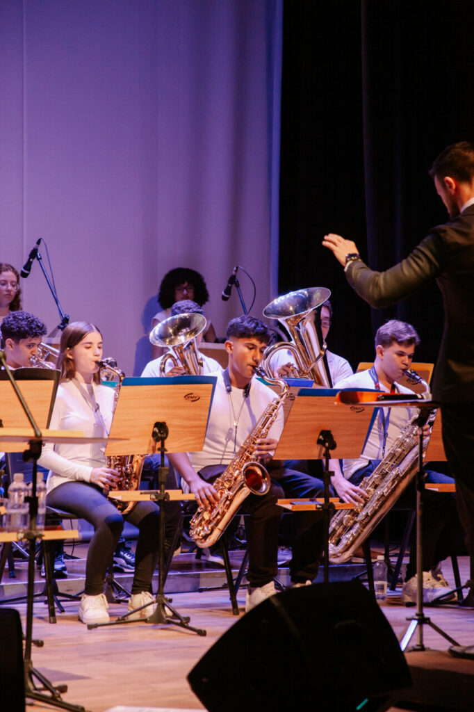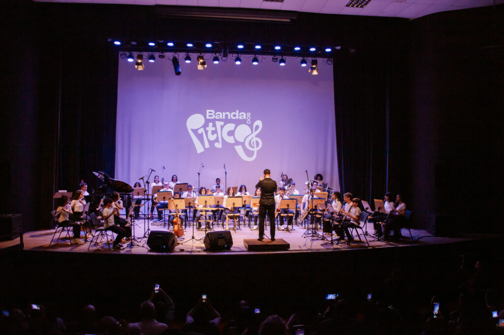 Em seguida, cada “pitico” foi apresentado para subir ao palco. Apresentações feitas, a banda encantou as 300 pessoas que lotaram o auditório do Teatro Elizabeth Keller de Matos. Um dos destaques do repertório executado pelo grupo foi a antológica música-tema do filme britânico “Carruagens de fogo”.