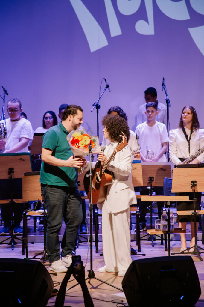 Após o fim do show, ainda no palco, Roberta Campos foi presenteada com um buquê de flores, entregue pelo secretário de Cultura, Régis Athanázio Bueno.