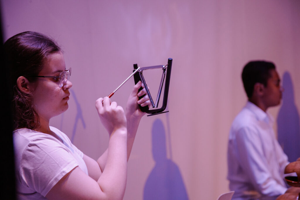A música cativou Samuel na infância. “Quando eu era mais novo, ficava à toa. Até que decidi aprender um instrumento para tocar”, contou o aluno, mostrando habilidade com os três pistons, que são as válvulas que devem ser acionadas para tocar o instrumento.