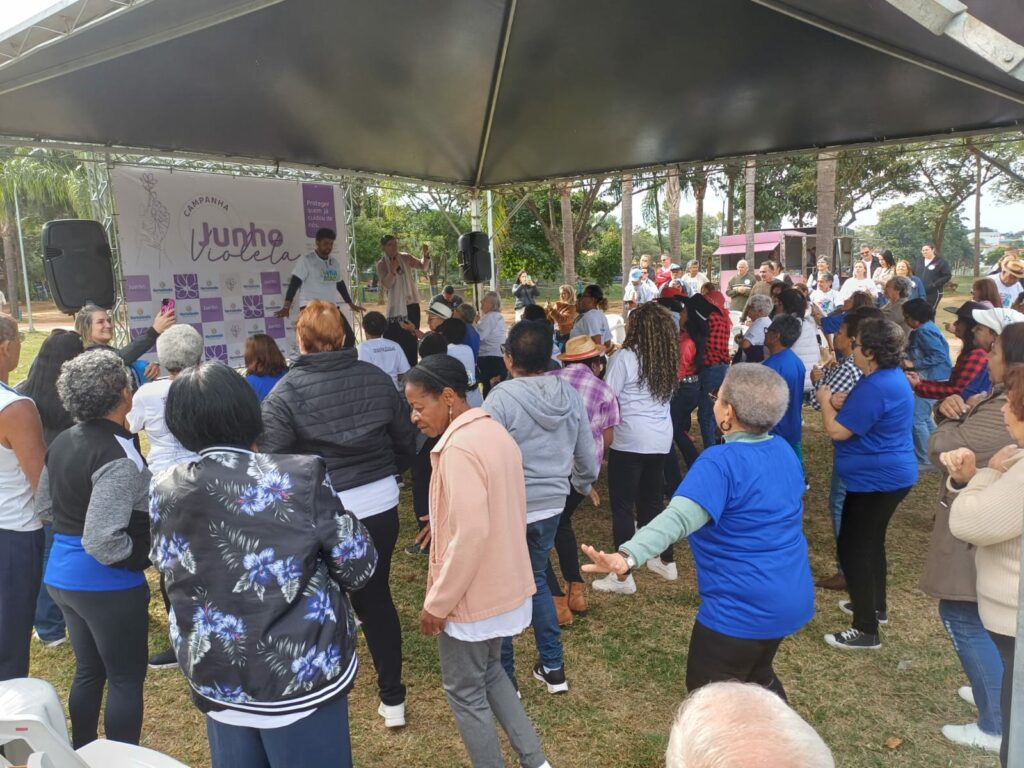 Música, dança e diversão embalaram a fria manhã de domingo (15/06), no OAPE (Observatório Parque Escola), localizado no Jardim Santa Clara do Lago, para o Dia “D” de Combate à Violência Contra a Pessoa Idosa. O evento organizado pela Prefeitura, faz parte do Junho Violeta, mês de conscientização sobre a violência contra a pessoa idosa e, de acordo com a Secretaria de Governo, contou com aproximadamente 300 pessoas. O Dia “D” foi organizado pela Departamento de Direitos Humanos e Políticas Públicas, envolvendo os Centros de Convivência da Melhor Idade do Jardim Amanda e do Remanso Campineiro, além do segmento do Idoso e o Conselho Municipal do Idosos.