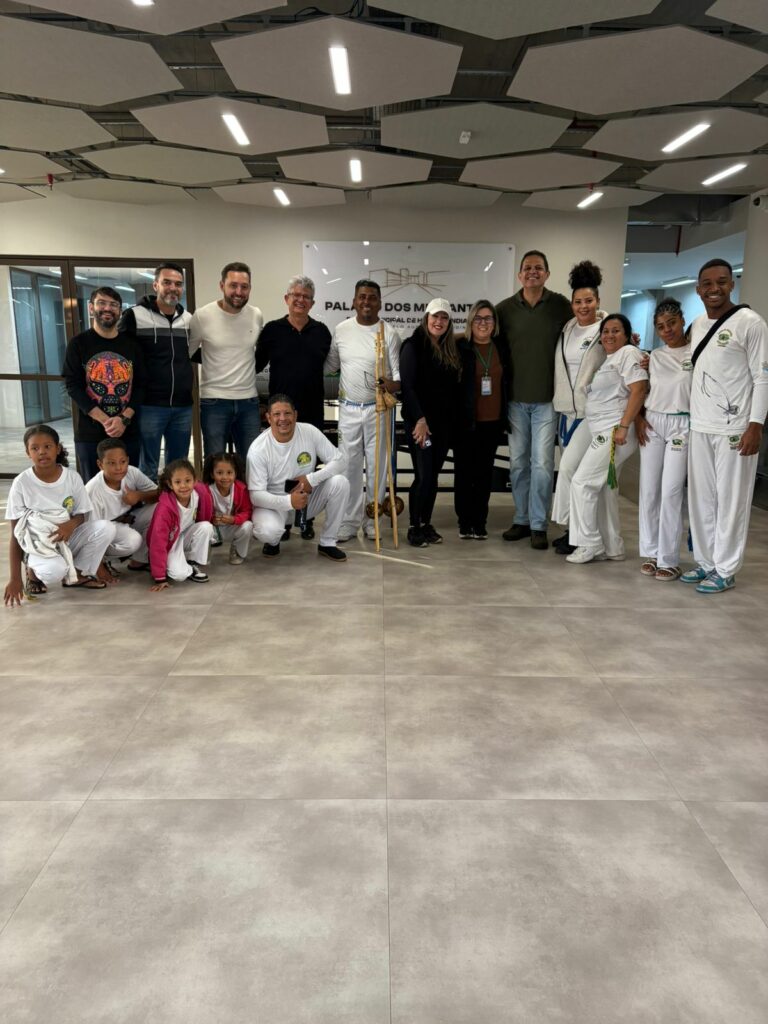 Aulão especial de alongamento e roda de capoeira marcaram a manhã desta segunda-feira (23/06), em comemoração ao Dia Nacional do Esporte, no Palácio dos Migrantes – Paço Municipal Prefeito Angelo Augusto Perugini, sede da Prefeitura de Hortolândia. A celebração da data tem o objetivo de incentivar o início  da prática esportiva, destacando os benefícios para a saúde, educação e inclusão social e como a junção destes fatores impacta positivamente a sociedade.