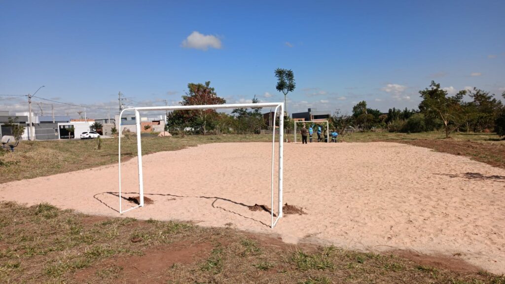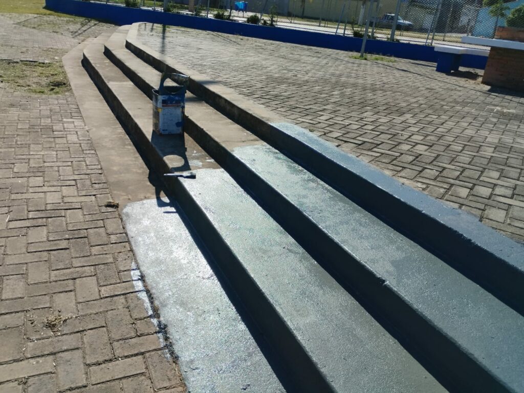 Ali, as equipes da Administração Municipal realizam a repintura de todo o espaço, além da instalação das traves dos gols e reforço das estruturas dos brinquedos do playground e aparelhos da academia de ginástica ao ar livre, limpeza e poda do mato do geral. Apesar do capricho da equipe, o serviço sofreu atrasos por conta do imprevisto com a trave, que precisou ser recuperada.