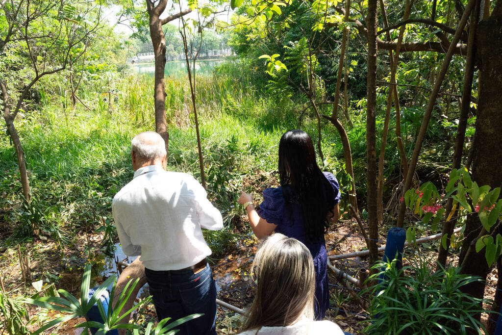 “Essas nascentes são de fácil acesso. Por exemplo, aqui dentro do Parque Irmã Dorothy, temos essa nascente que foi preservada lá atrás, inclusive por moradores antigos, que reconheceram a existência dessa nascente, que foi uma das opções para a implantação desse parque. Muitas vezes, as pessoas visitam o parque, as escolas que vêm aqui e fazem atividades de educação ambiental, não observam que existe uma nascente aqui dentro. Então, a gente revitalizou essa nascente, identificou através de uma placa que tem um QR Code que mostra a existência dessa nascente e o número cadastrado para que as pessoas que visitem, as escolas que fazem atividade de educação ambiental aqui no parque, possam de fato reconhecer que esta é a nascente que abastece a nossa lagoa. Ela é, inclusive, uma das principais nascentes da cidade, porque não recebe nenhuma tubulação de águas pluviais. É uma nascente de água pura, que abastece a nossa lagoa”, afirmou Eliane.