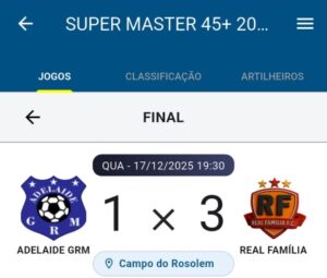 Equipe venceu o Adelaide por 3 a 1 no Campo do Rosolém na competição organizada pela Prefeitura O Real Família é o último campeão da…